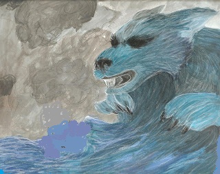 The giant sea-dog moans,