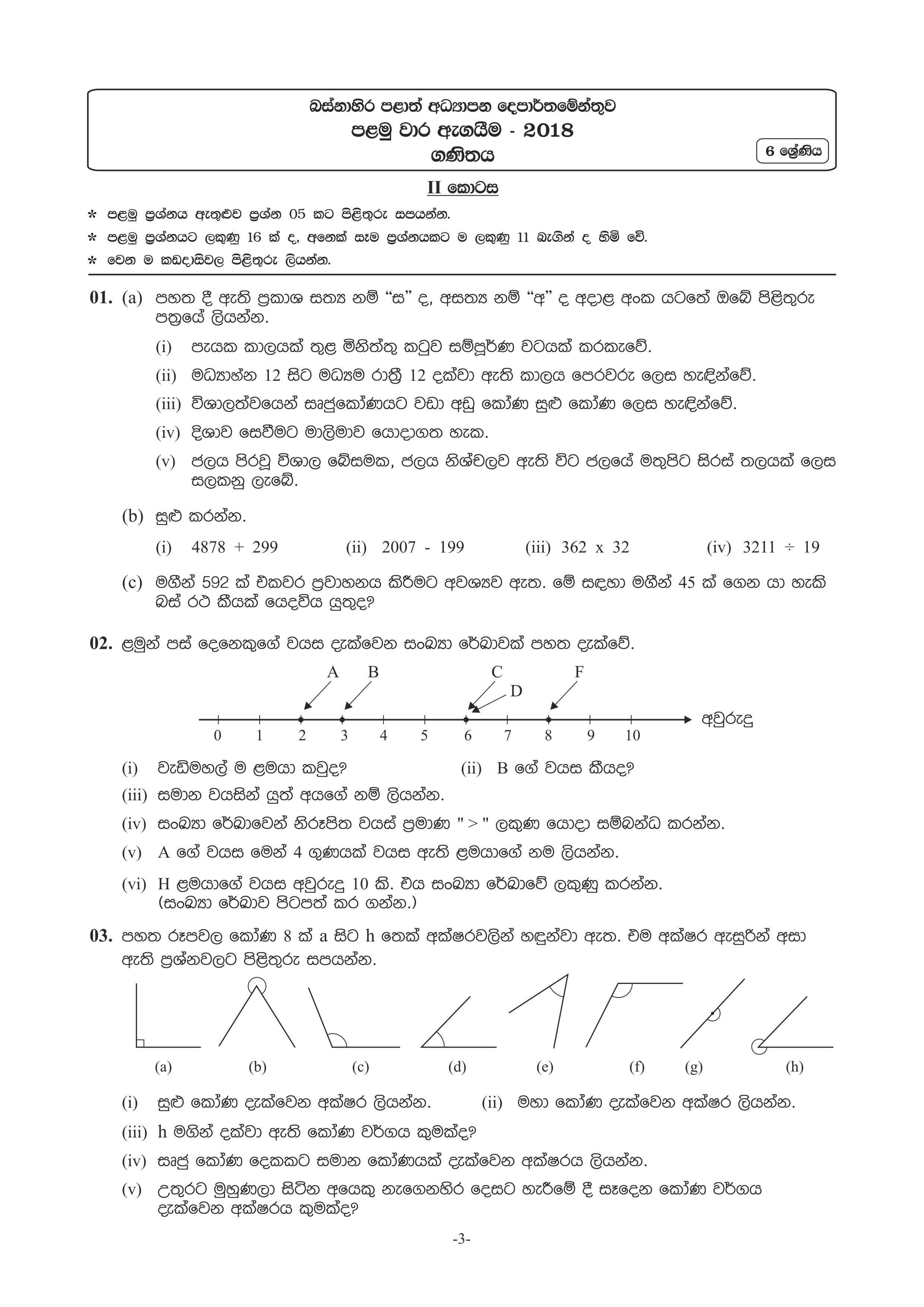 බස්නාහිර පළාත පළමු වාරය I,II ප්රශ්න පත්රය 2018 -page 3