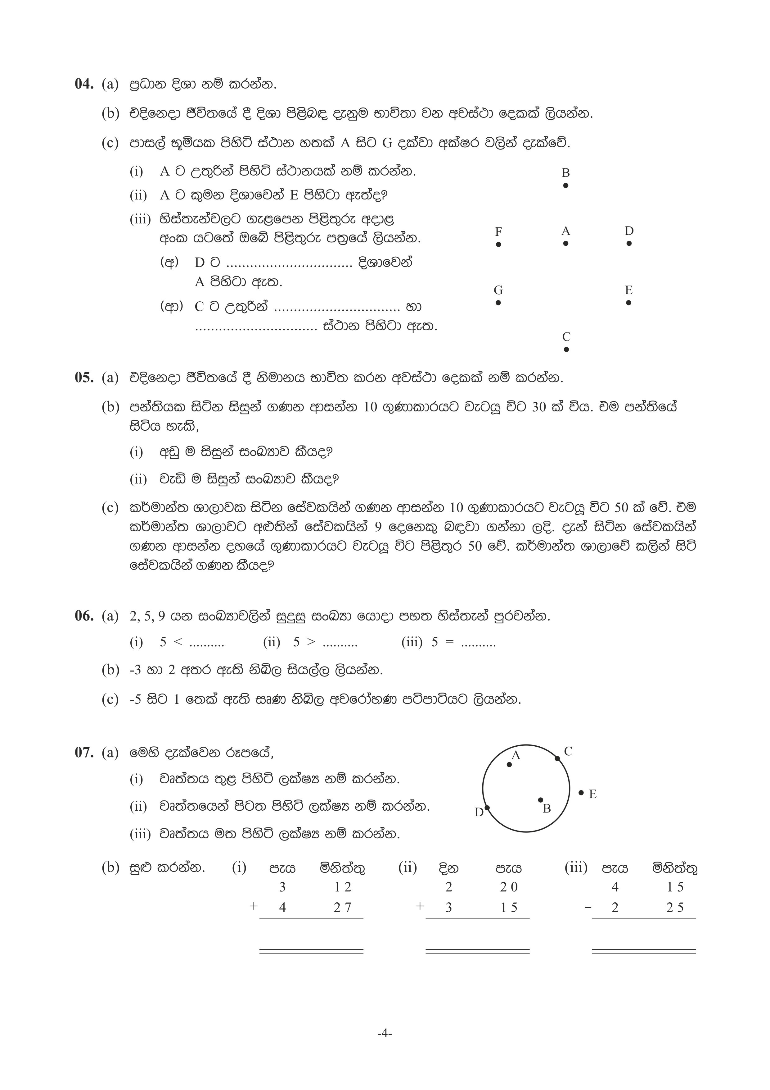 බස්නාහිර පළාත පළමු වාරය I,II ප්රශ්න පත්රය 2018 -page 4